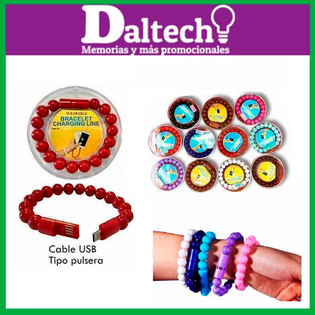 Cable USB en forma de pulseraPara recarga de energía y transmisión de datosUSB 2.0Longitud 23,4 cm