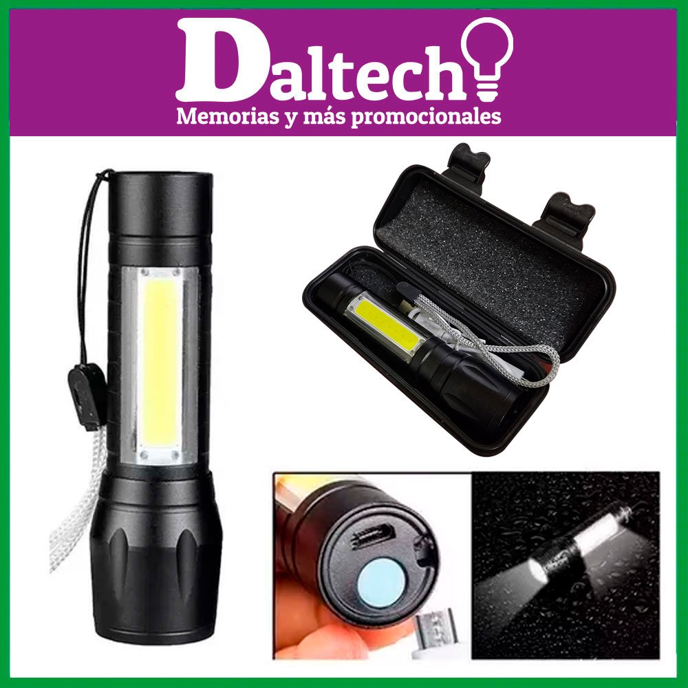 Mini Lampara táctica de mano doble Led uno frontal y uno lateral.